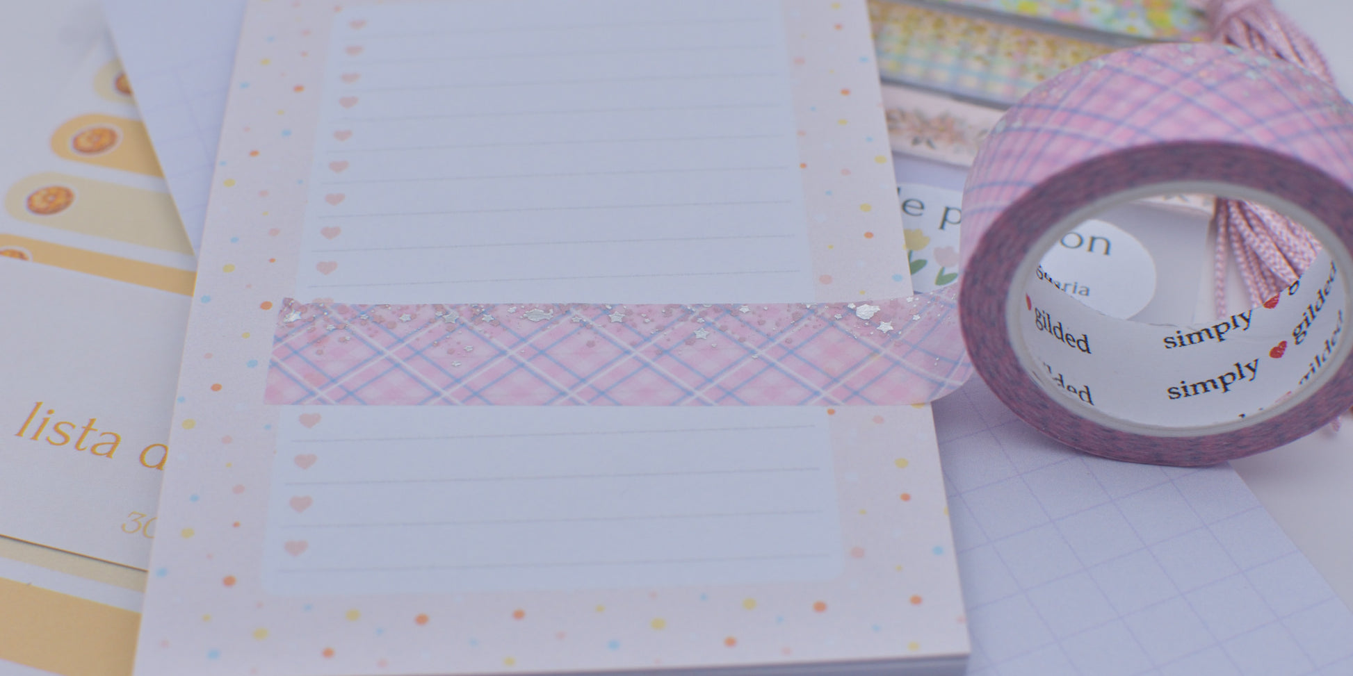 Amostra de Washi Tape - Simply Gilded 15 mm - Cotton Candy Plaid Stardust Pink